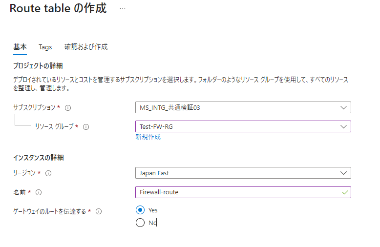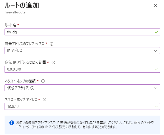 名前:Firewall-route ゲートウェイのルート伝達する:Yes |
