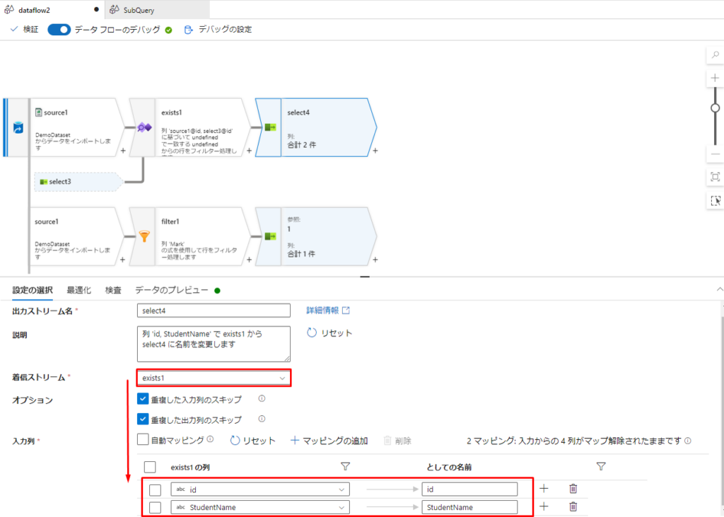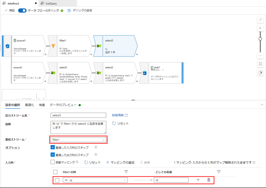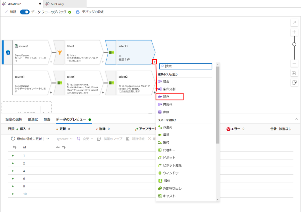 Azure Data Factoryでインラインビュー、サブクエリーを実現する方法について説明しました