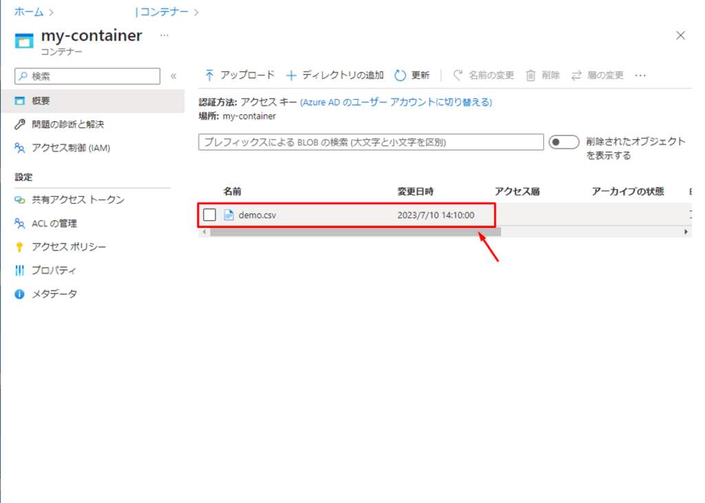 2.1 demo.csv ファイルをストレージアカウントへ取り込む