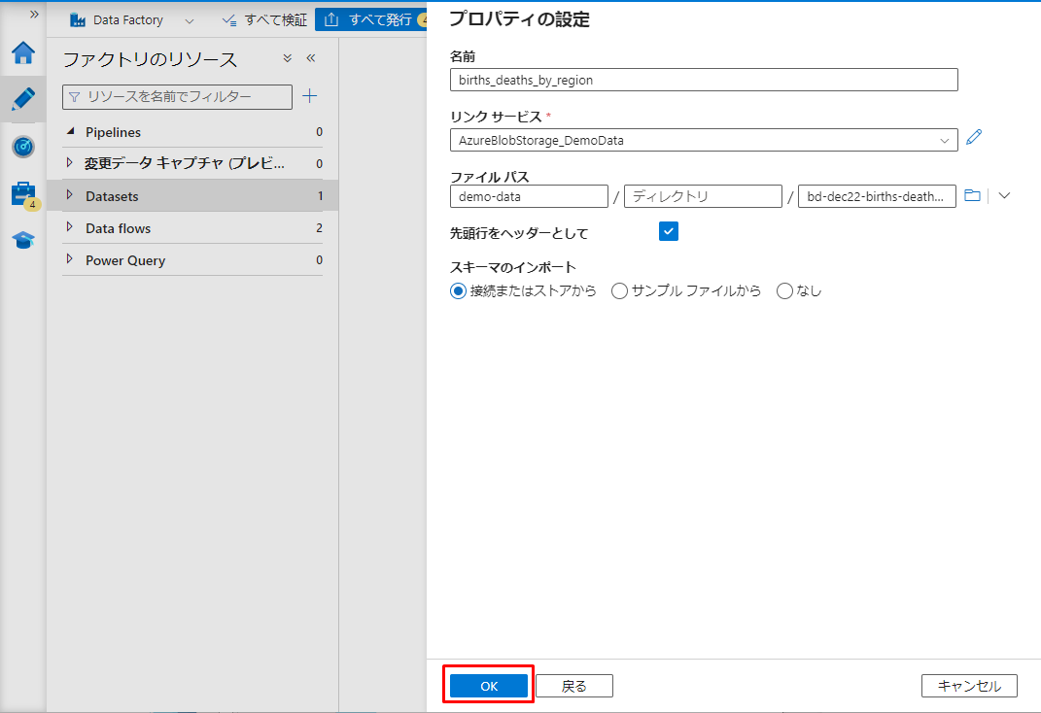 3.Azure Data Factory へ CSV ファイルをインポートする