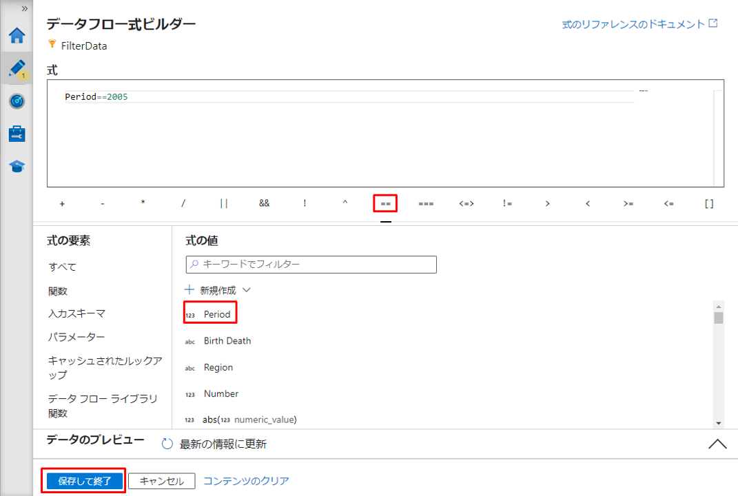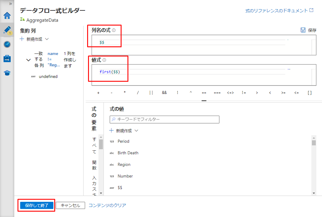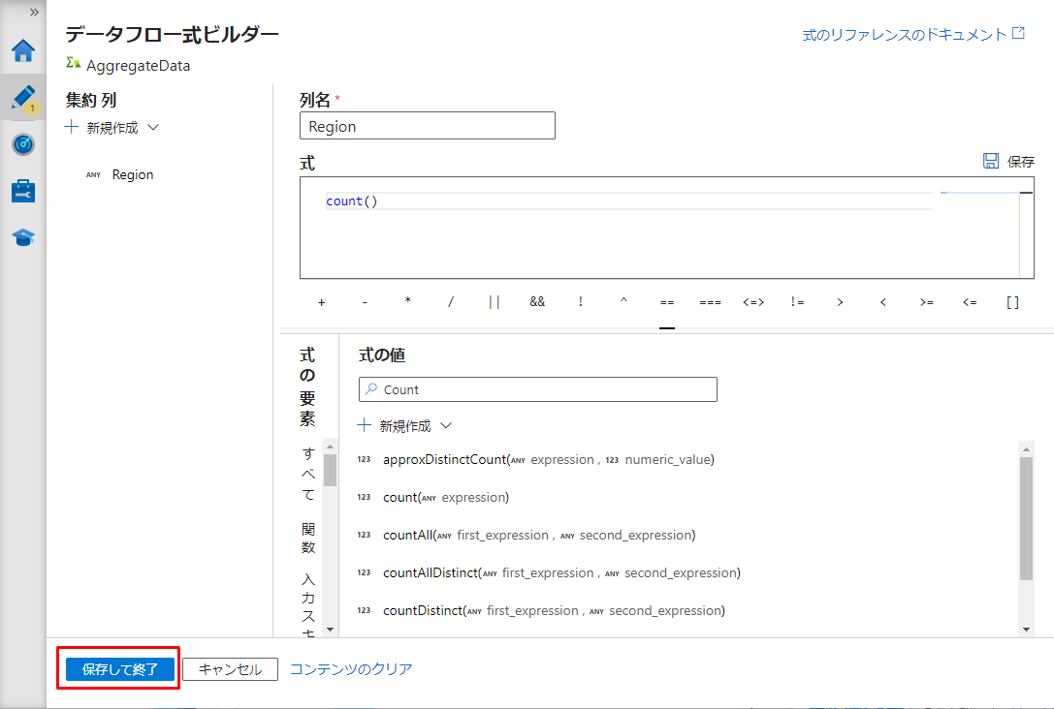 ⑤「保存して終了」ボタンをクリックして式を保存します。
