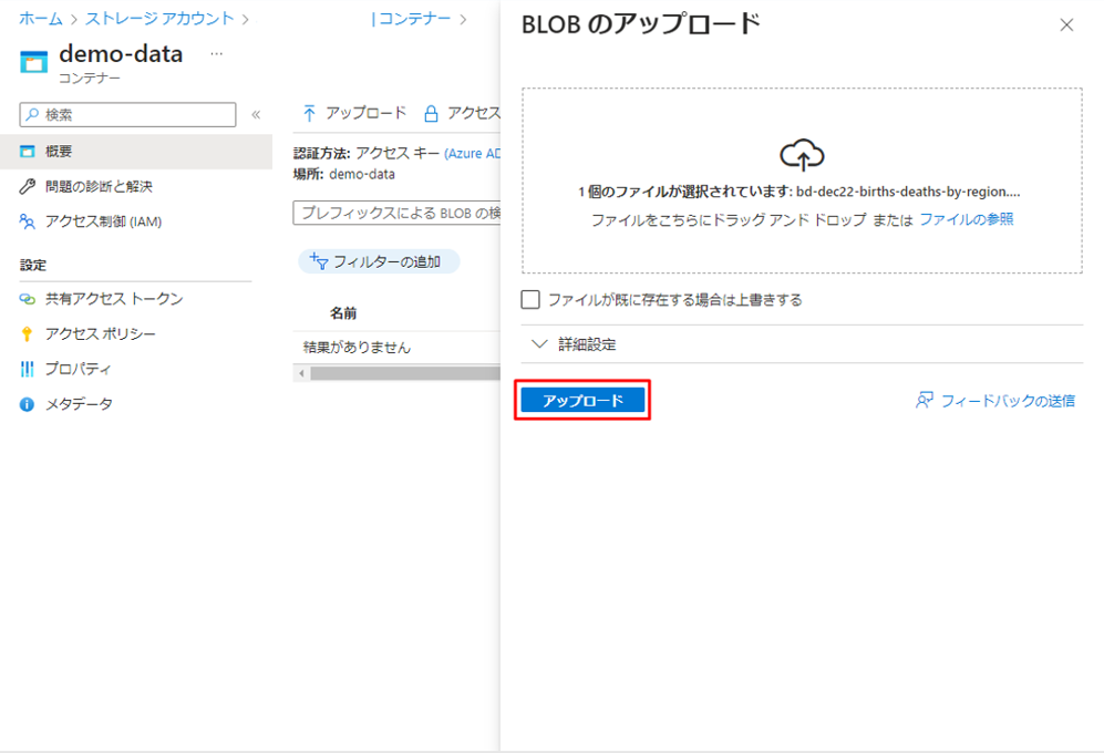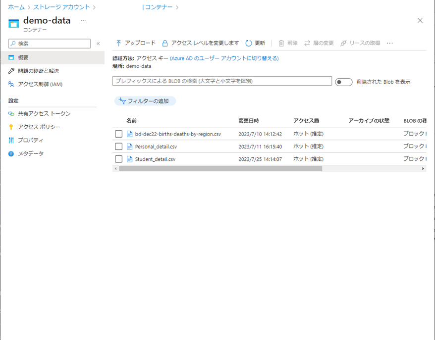 同様に、他のファイルをストレージ アカウントにアップロードします。