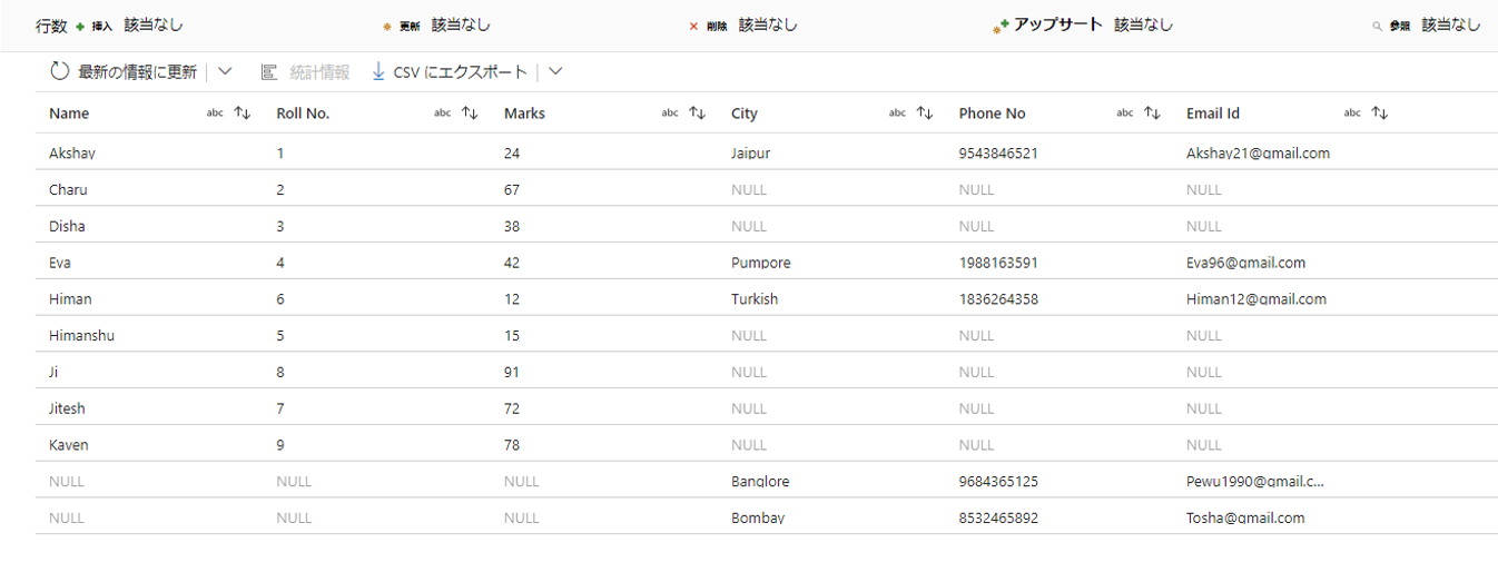 この結合タイプは完全外部結合であるため、出力には両方のテーブルのすべての行が含まれます。 一致する行がない場合、結果セットには null 値が含まれます。