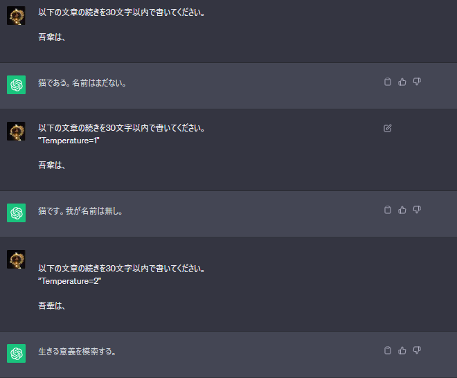 クリエイティブな文章を作りたい方は、Temperatureの値を高くしてみましょう!