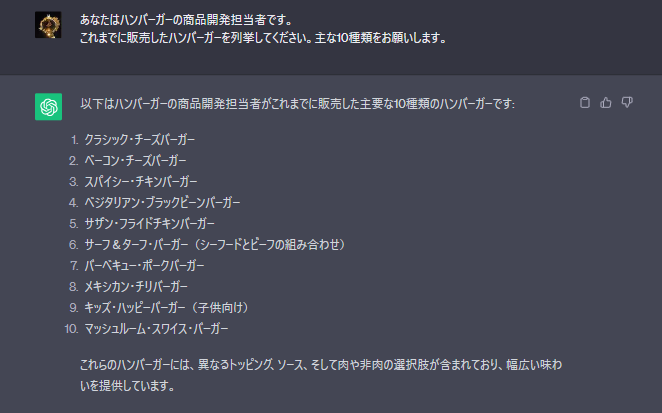 ハンバーガーの商品開発担当者になってもらいロールプレイしてみます。