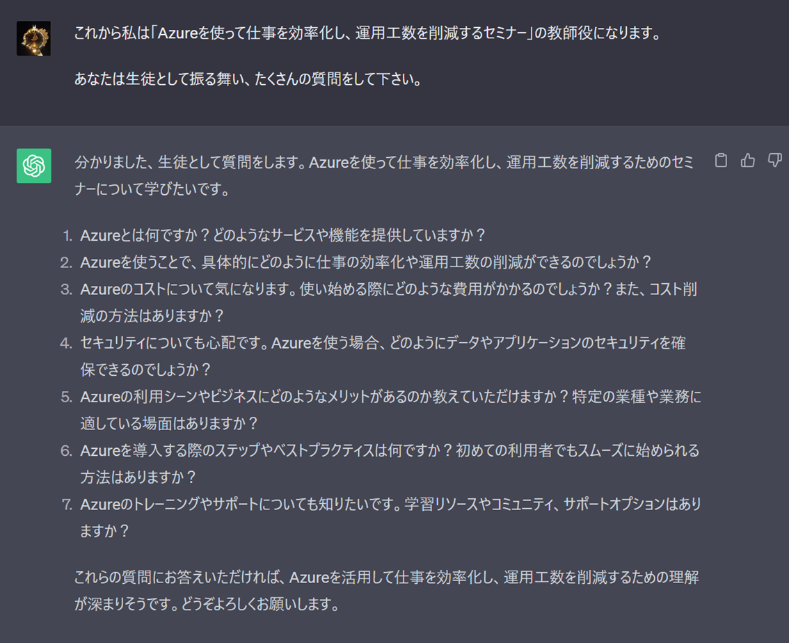 ・教師になりきる・・・大規模言語モデルに関するレクチャーが可能。