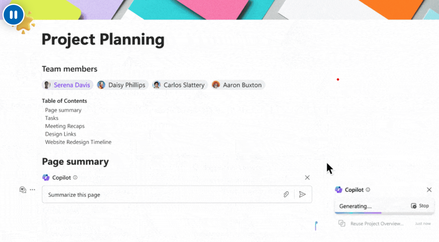 ページ作成機能を持っており、過去の作業を分析し、現在のプロジェクトページに自動的に適応させたり、目標に合わせたコンテンツの提案等を行います。