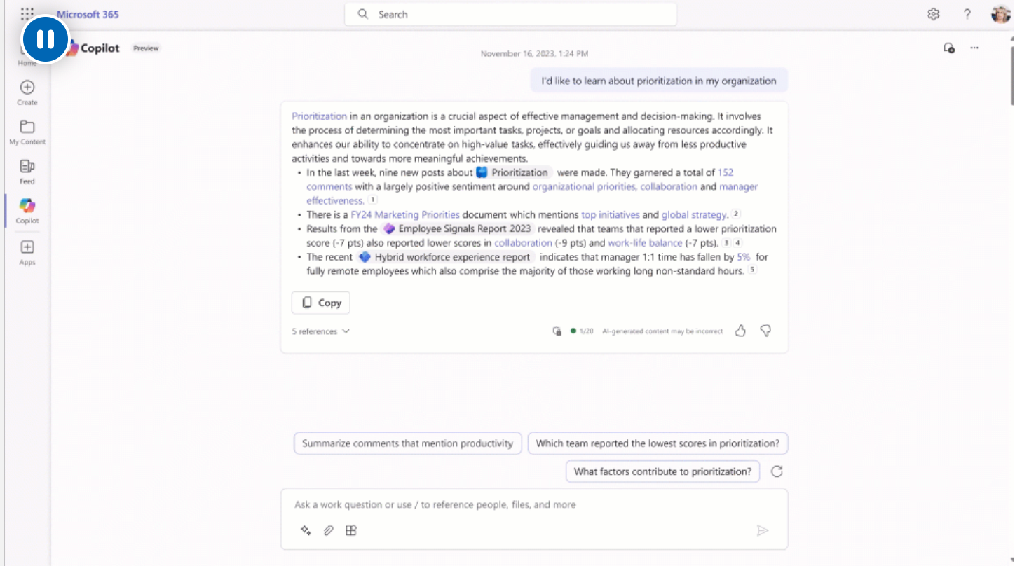 ユーザーは自分の役割や重要な要素をCopilotに教えることができ、これにより書式、スタイル、トーンなどがカスタマイズされた応答を得ることができます。この機能はWordとPowerPointから始まり、Microsoft 365の他のアプリにも展開される予定です。