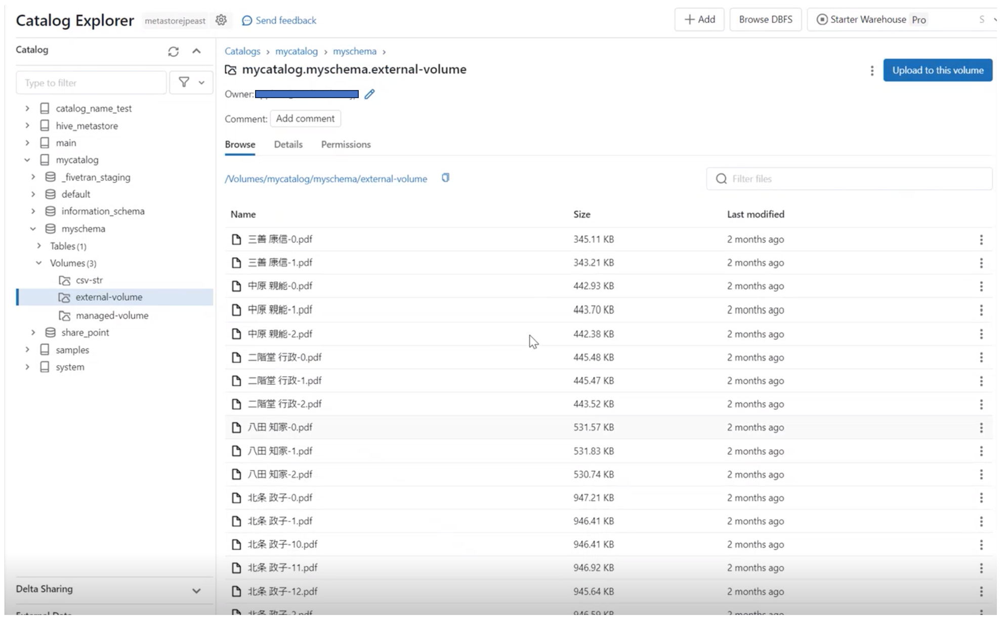 ②Azure Databricks のユニティカタログで、Blobストレージを接続します。