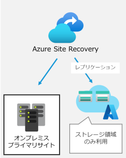 通常時は、Azure Site Recoveryにより、プライマリサイトのオンプレミス環境からAzureへレプリケーションを行い、災害時に備えます。