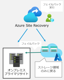 オンプレミスのプライマリサイト復旧時は、フェールオーバー後に作成された仮想マシンをオンプレミスサイトにレプリケートし、フェイルバックを実施します。