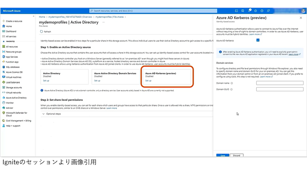 具体的に言うと、FSLogix のユーザー プロファイルを Azure Files に保存し、Azure AD JoinしたAVD からアクセスできるようになるとのことです。