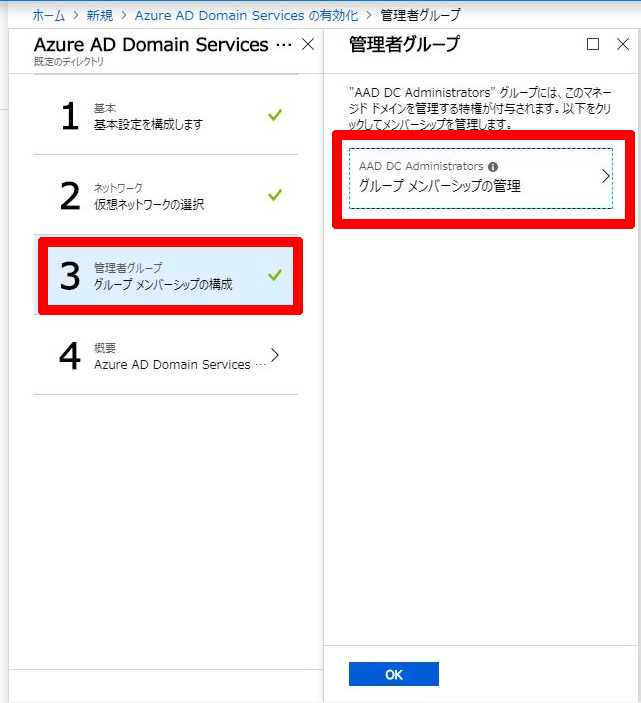 IaaSのADDSでのドメイン管理者のグループはDomain Adminsを利用しますが、Azure ADDS内で利用できる最上位の権限がこの、AAD DC Administratorsというグループになります。