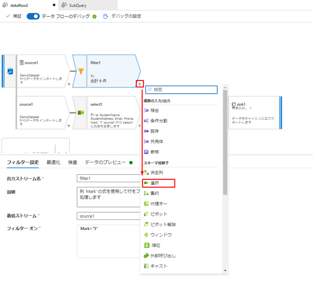 Azure Data Factoryでインラインビュー、サブクエリーを実現する方法について説明しました