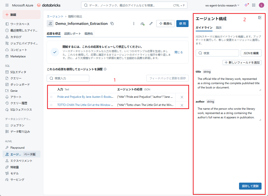 Agent Bricksの情報抽出は、 MLflow及びエージェント評価(Agent Evaluation)を含む自動評価機能を活用して、
