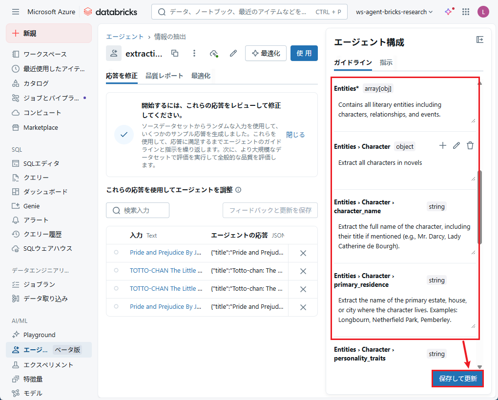 「エージェントを更新」をクリックして変更内容を保存します。