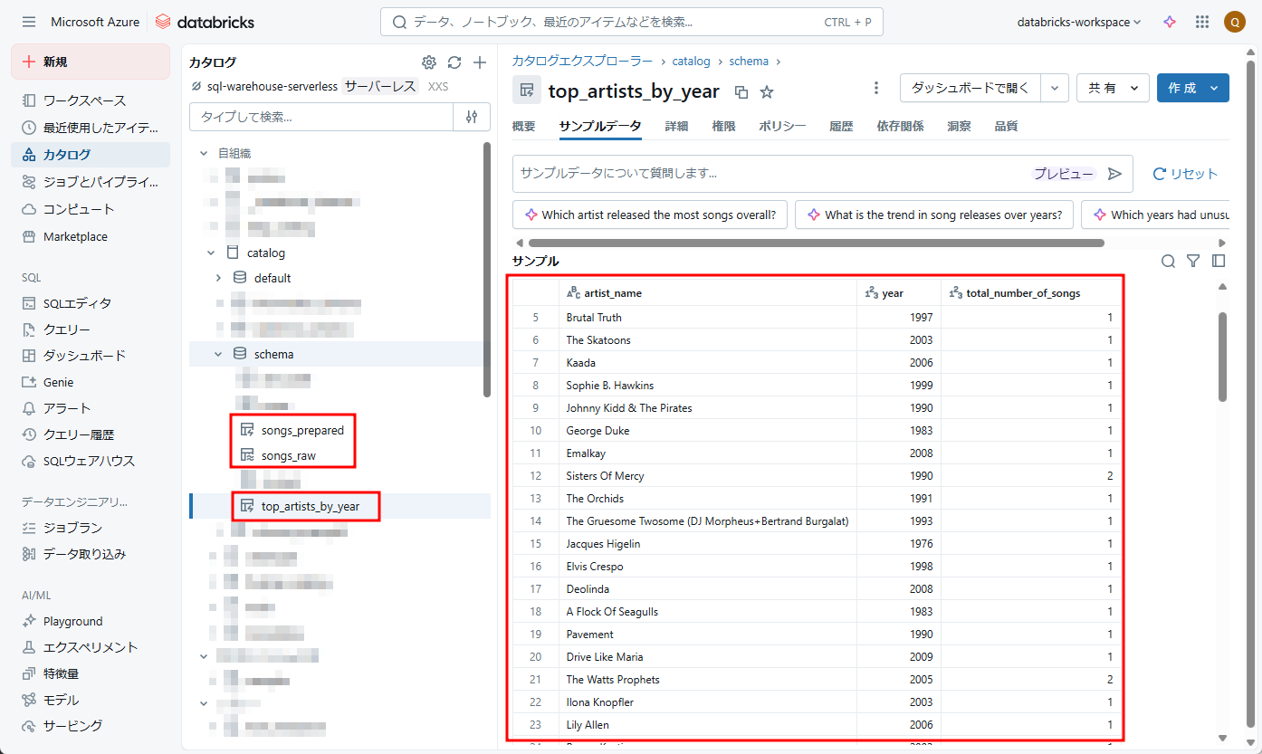 2. 「songs_raw」テーブルをクレンジングし、「songs_prepared」テーブルを作成します。