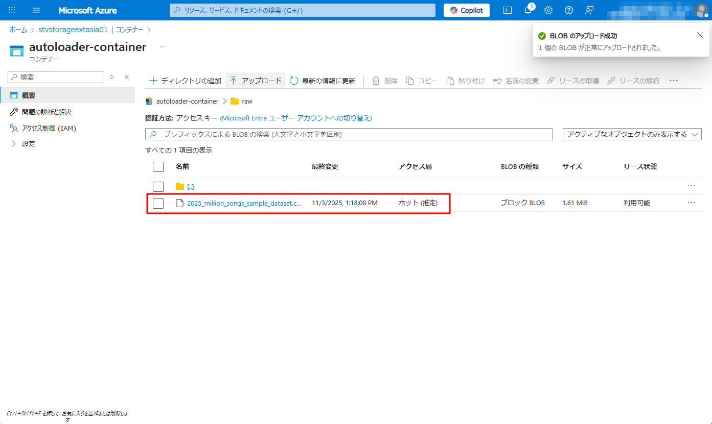 まず、サンプルデータをAzure ストレージアカウントにアップロードして、次の手順を実施します。