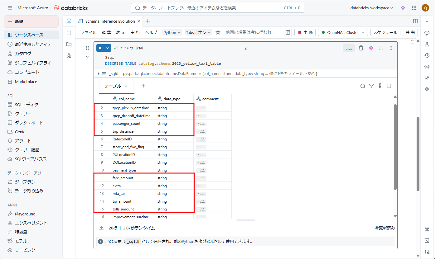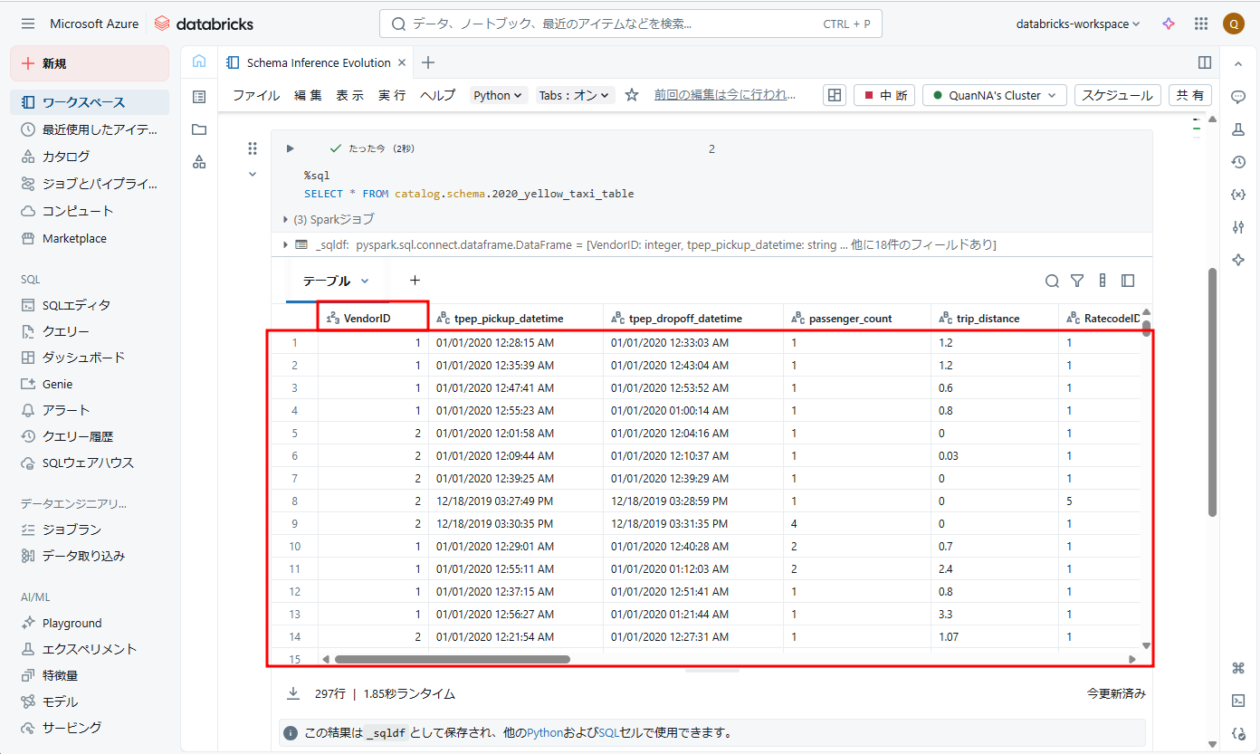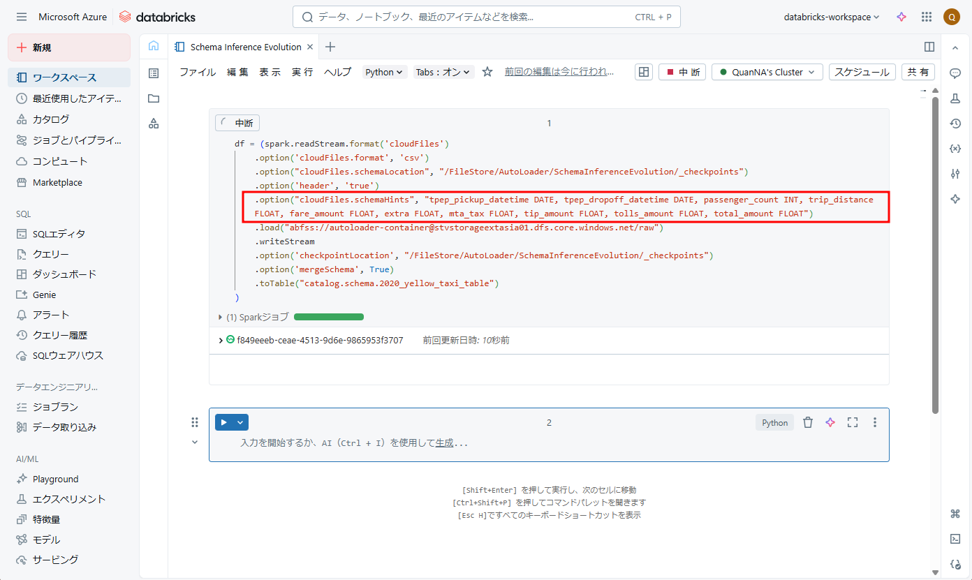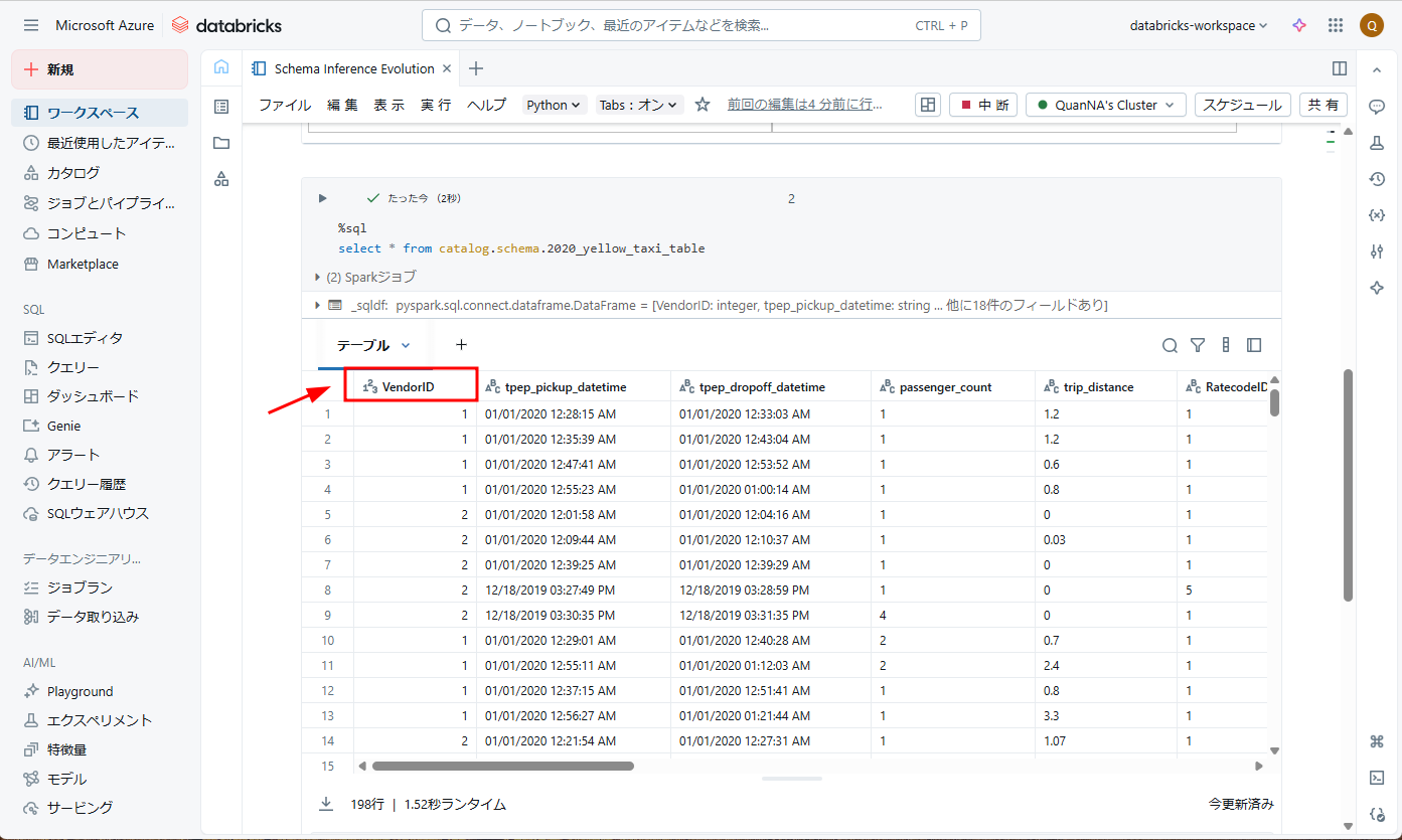 前回のブログでは、Auto Loader を使用して [2020_Yellow_Taxi_Trip_Data] データセットをストレージアカウントからロードしました。今回は、そのデータデットを再利用してスキーマ推論と進化の機能を説明します。