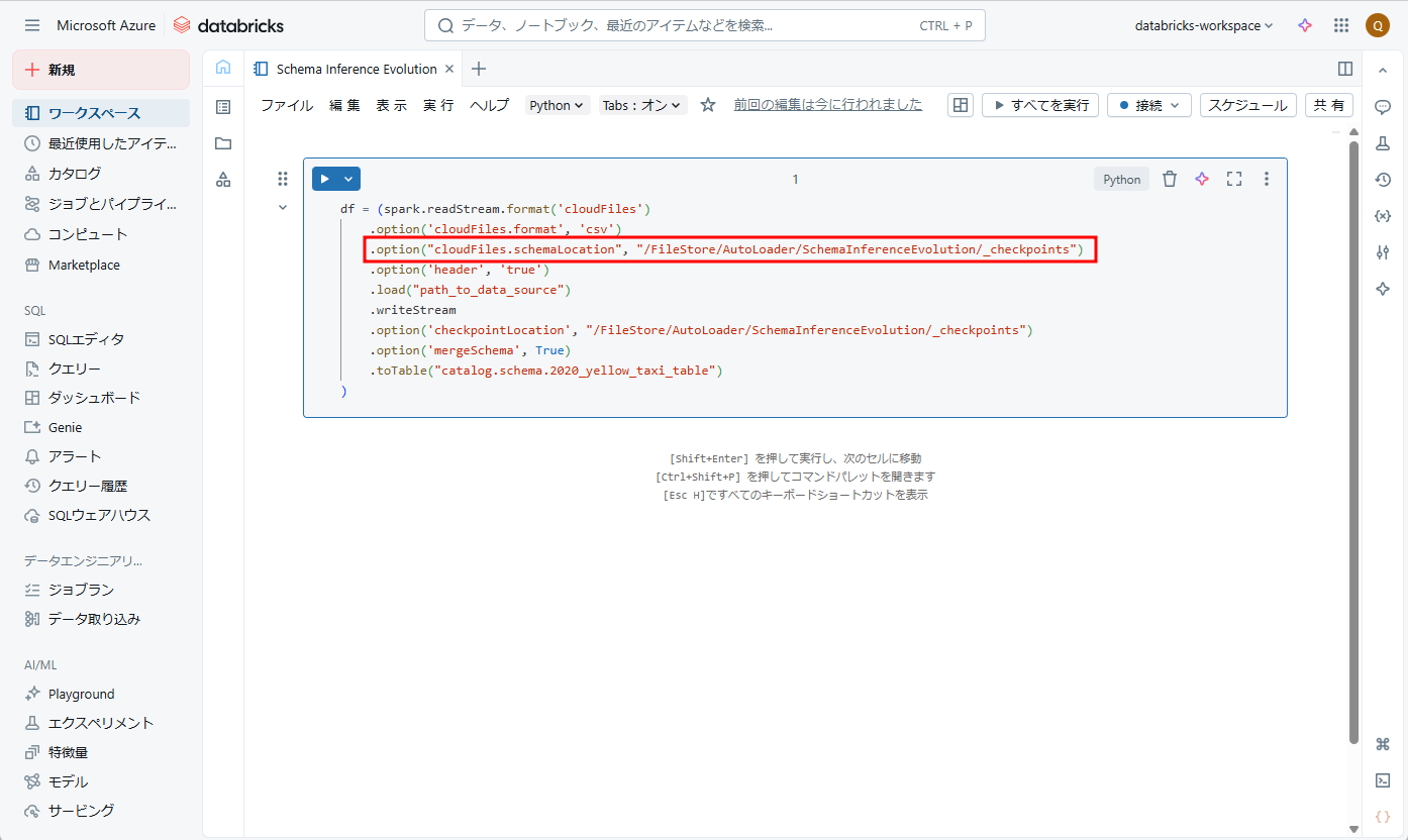 今回は、Auto Loader の スキーマ推論と進化の機能について説明します。