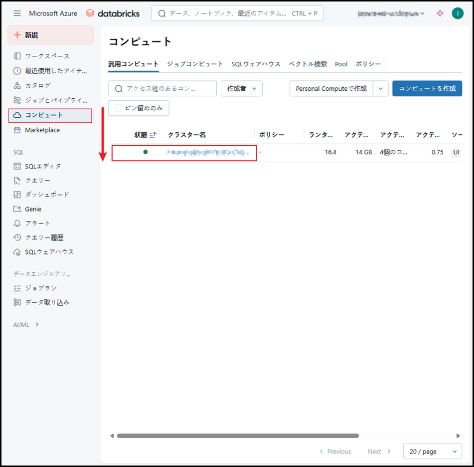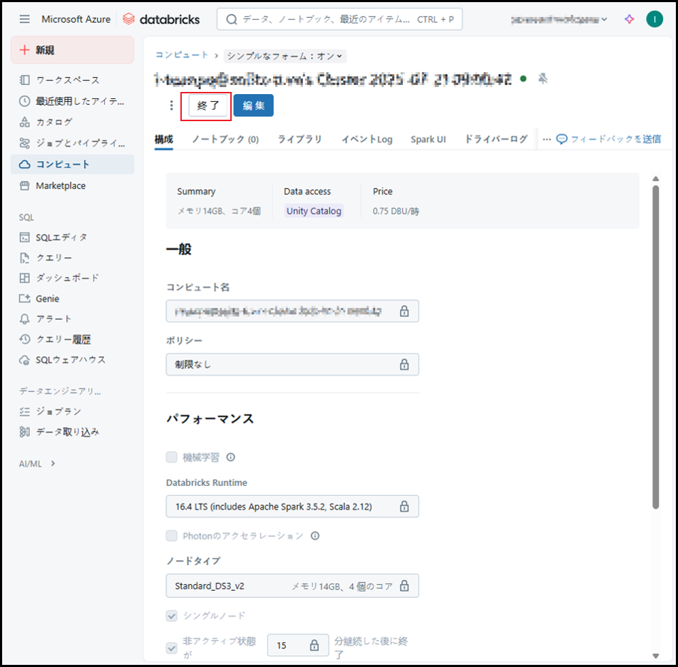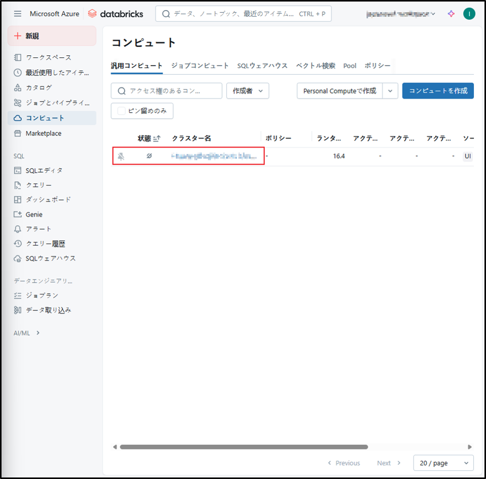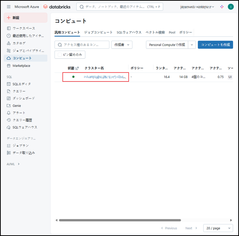 参考URL:クラスターの管理 – Azure Databricks | Microsoft Learn