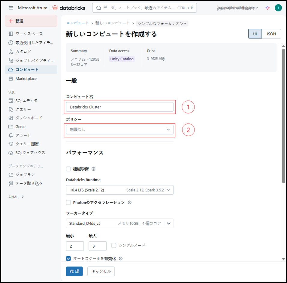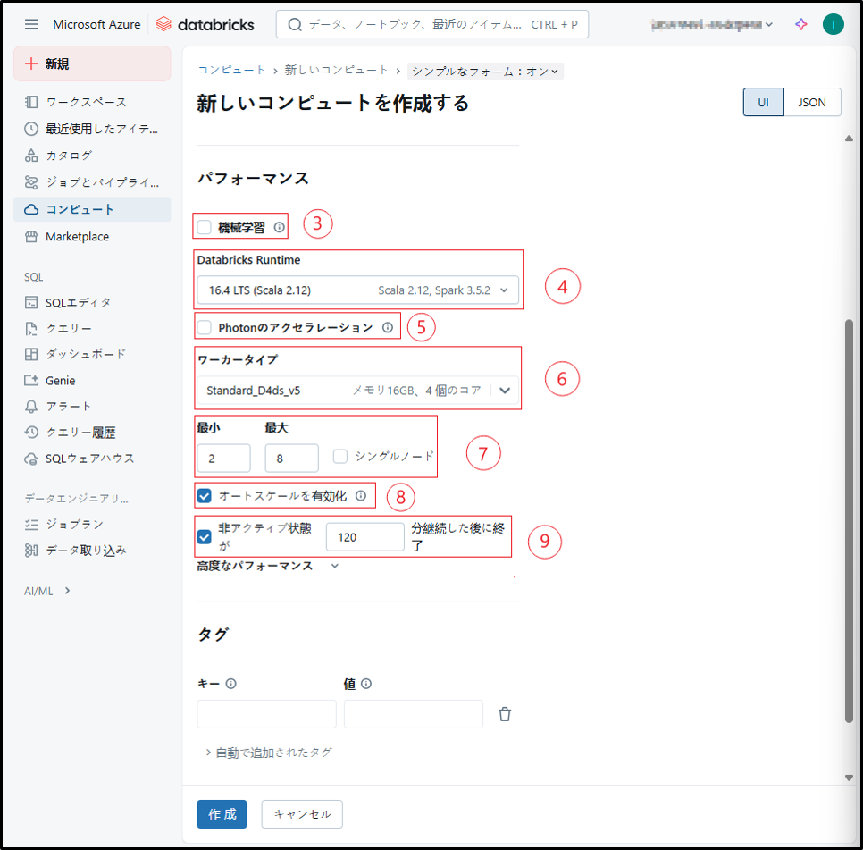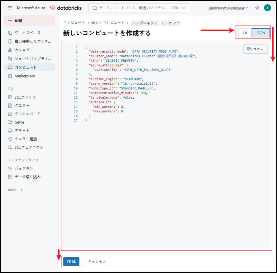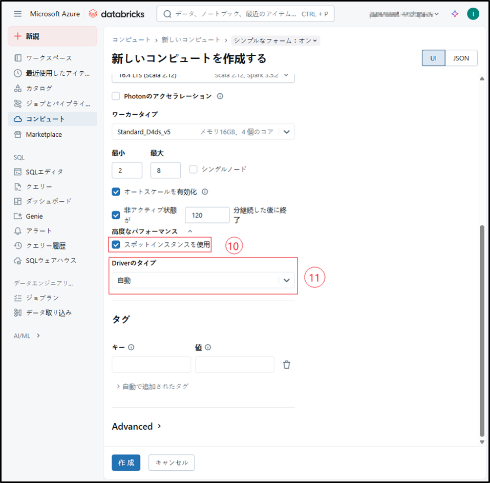 参考URL:クラスターを構成する – Azure Databricks | Microsoft Learn