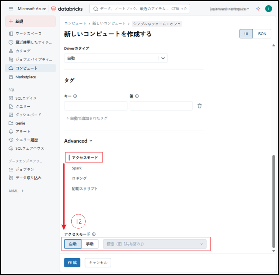 Databricksは、コンピュート構成に基づいて最適なアクセスモードを自動的に選択します。