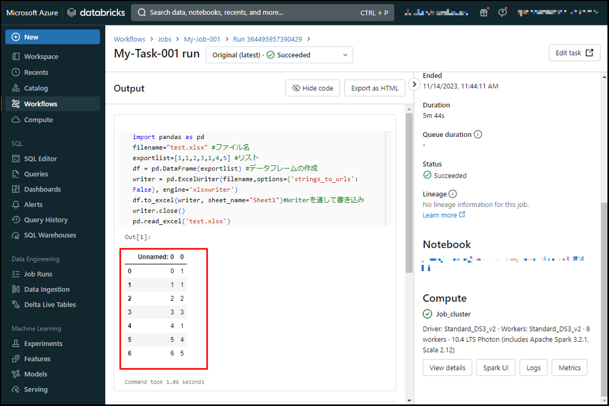 [XlsxWriter==3.1.8] と [openpyxl==3.1.2]ライブラリを利用したノートブックを作成し、汎用クラスターを確認します。