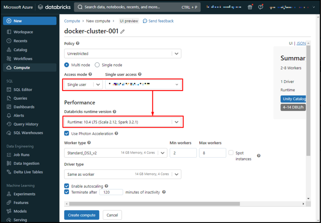 - [Databricks runtime version] -> [Runtime: 10.4 LTS]