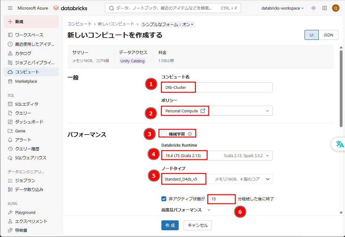 - 「Databricks Runtime」:16.4 LTS (Scala 2.13)