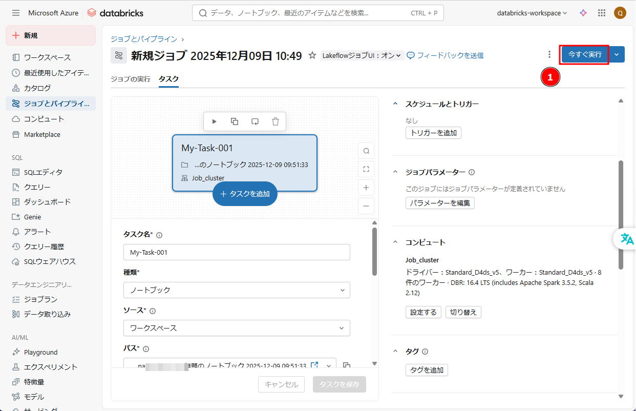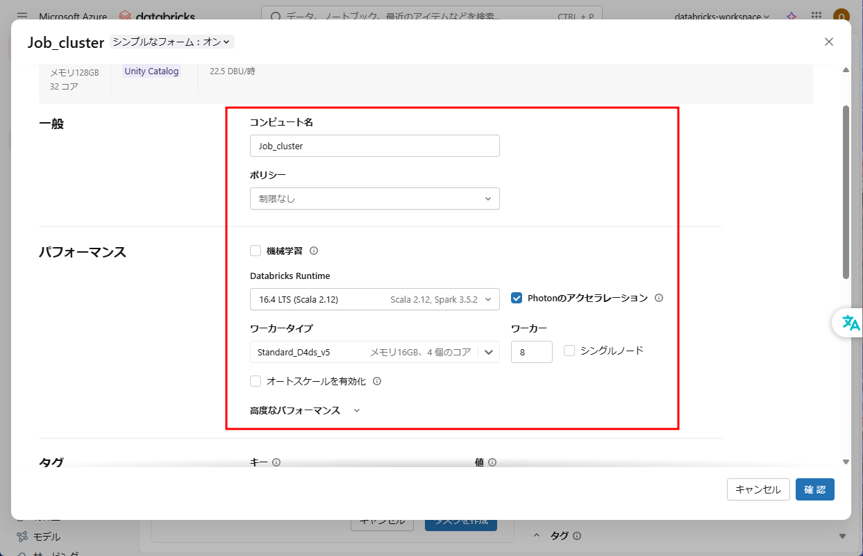 - 「Databricks Runtime」:16.4 LTS (Scala 2.12)