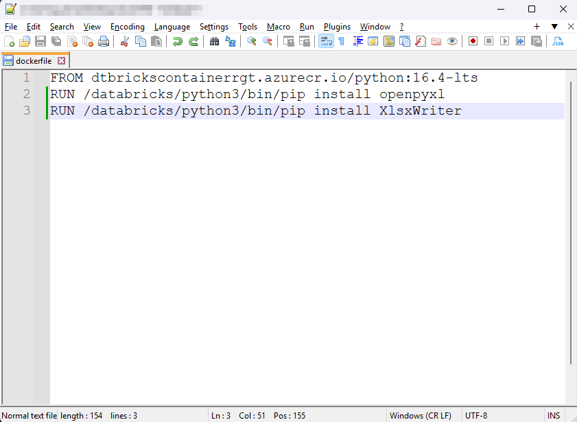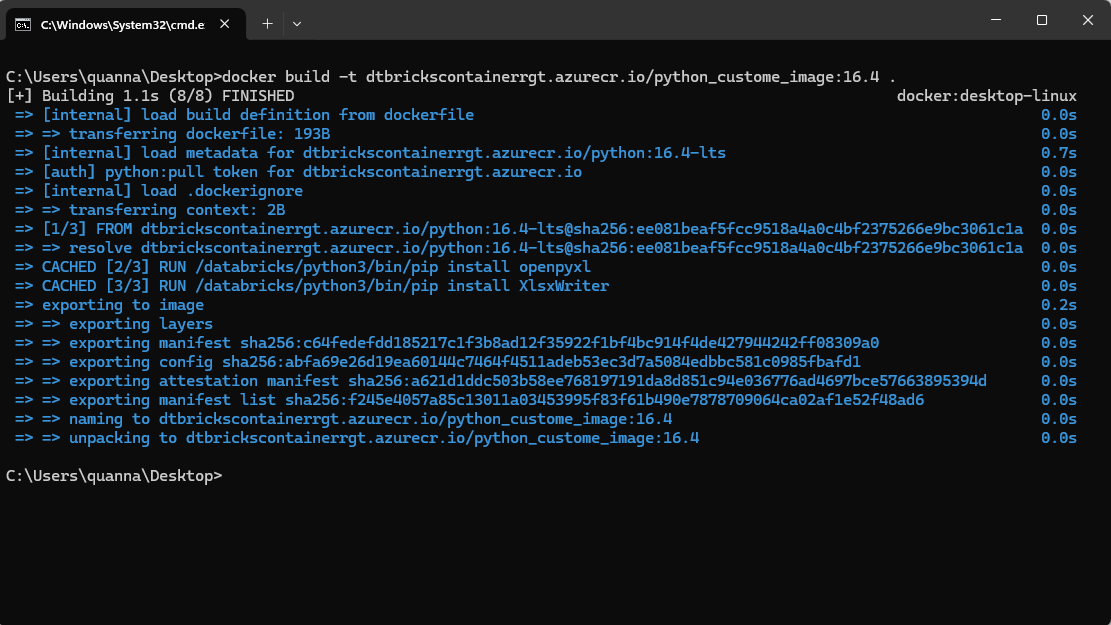 docker build -t dtbrickscontainerrgt.azurecr.io/python_custome_image:16.4 . |