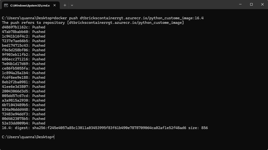 docker push dtbrickscontainerrgt.azurecr.io/python_custome_image:16.4 |