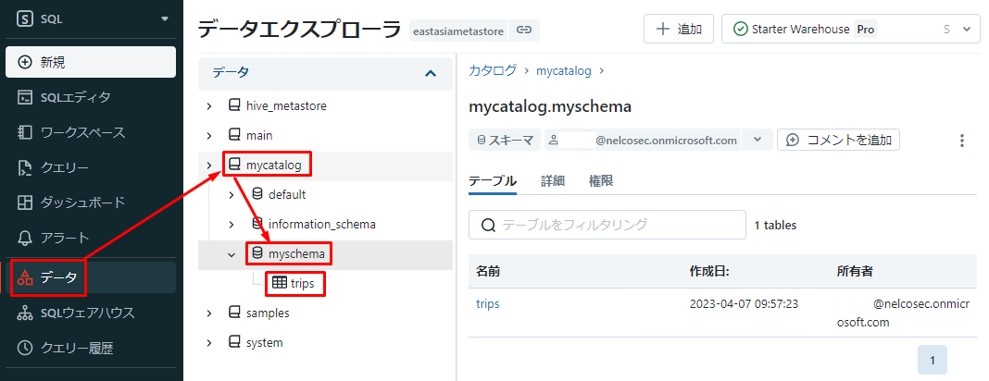 ③以下の通りで実行し、Unity Catalogに保存されたデータを確認します。