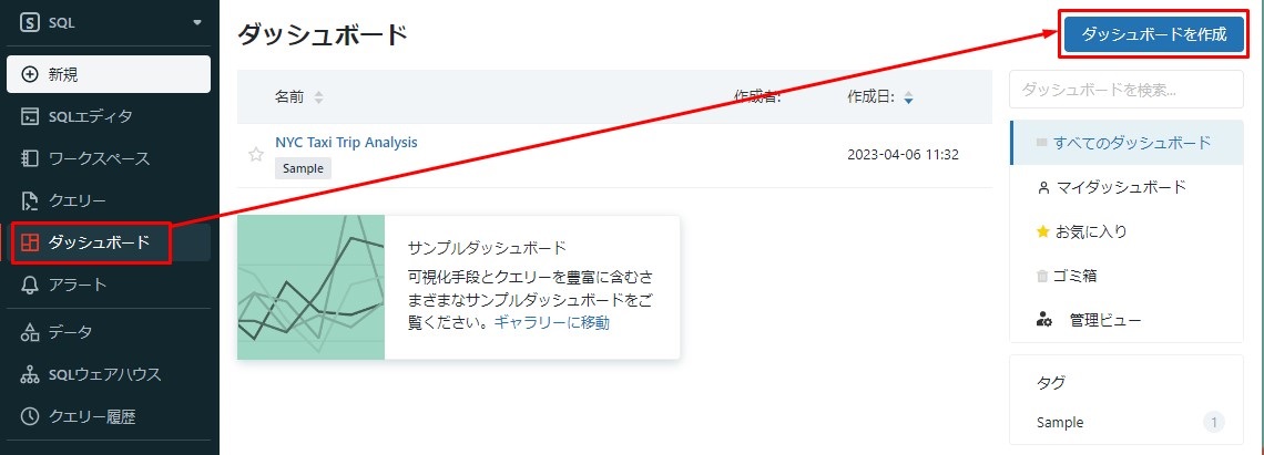 第1回:【Azure Databricks SQL ダッシュボード】サンプルダッシュボードのインポートと基本操作