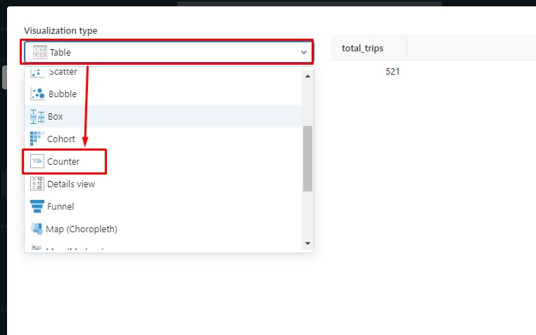⑦ダイアログの「Visualization type」項目で「Counter」を選択します。