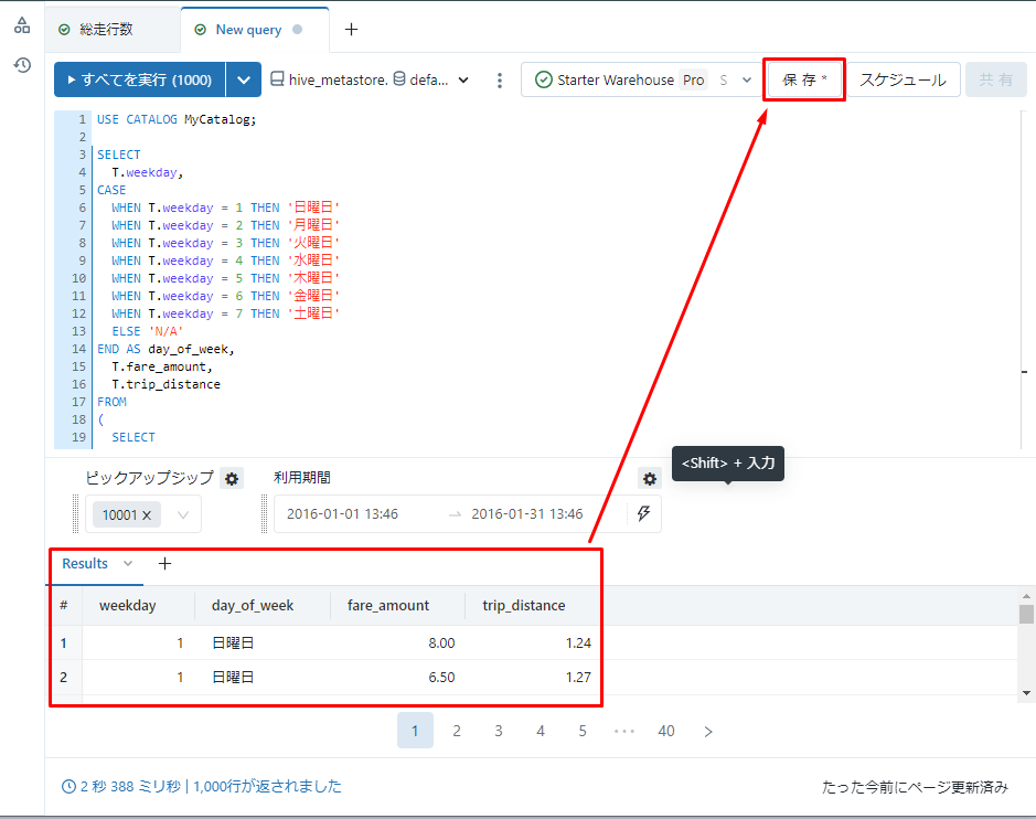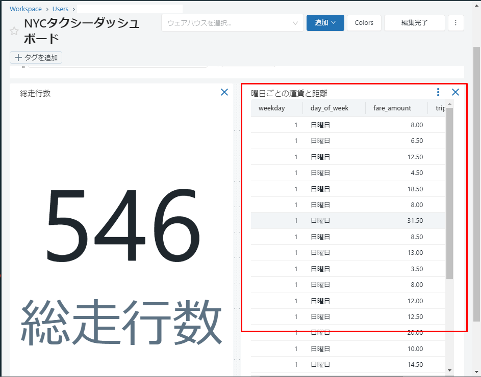 第3回:【Azure Databricks SQL ダッシュボード】曜日ごとの運賃と距離の可視化の作成(今回)