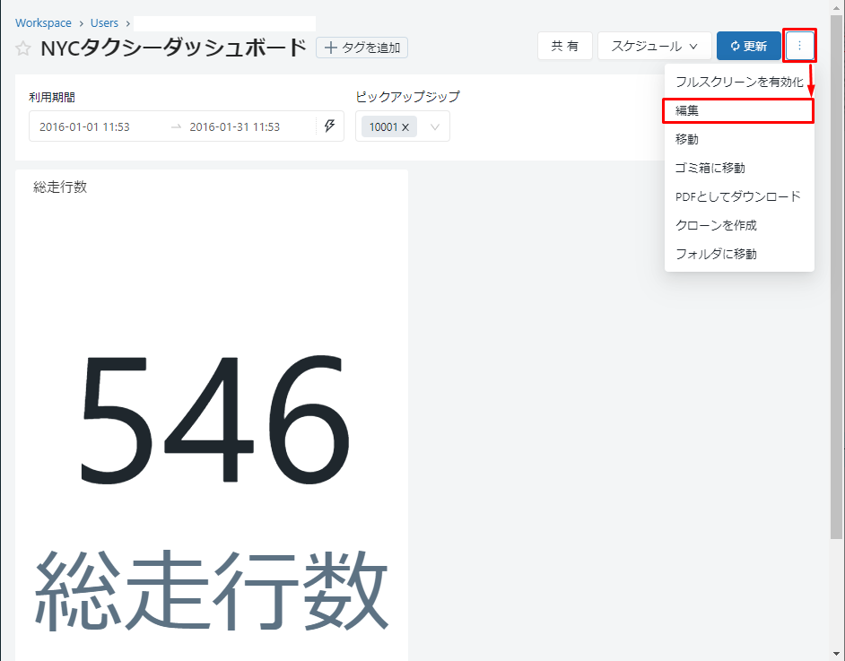 ②ダッシュボードで  をクリックして、「編集」を選択します。