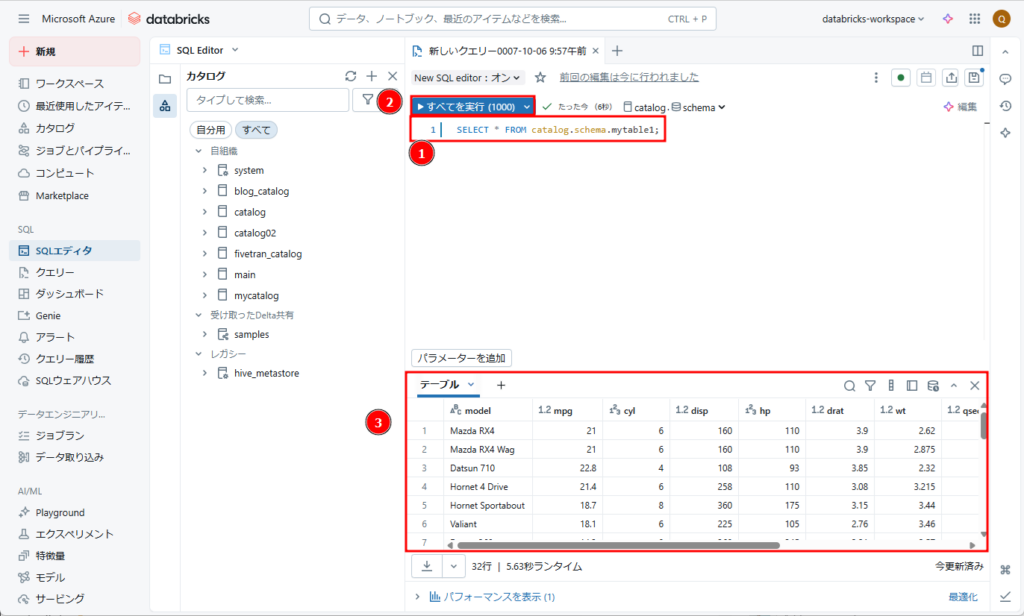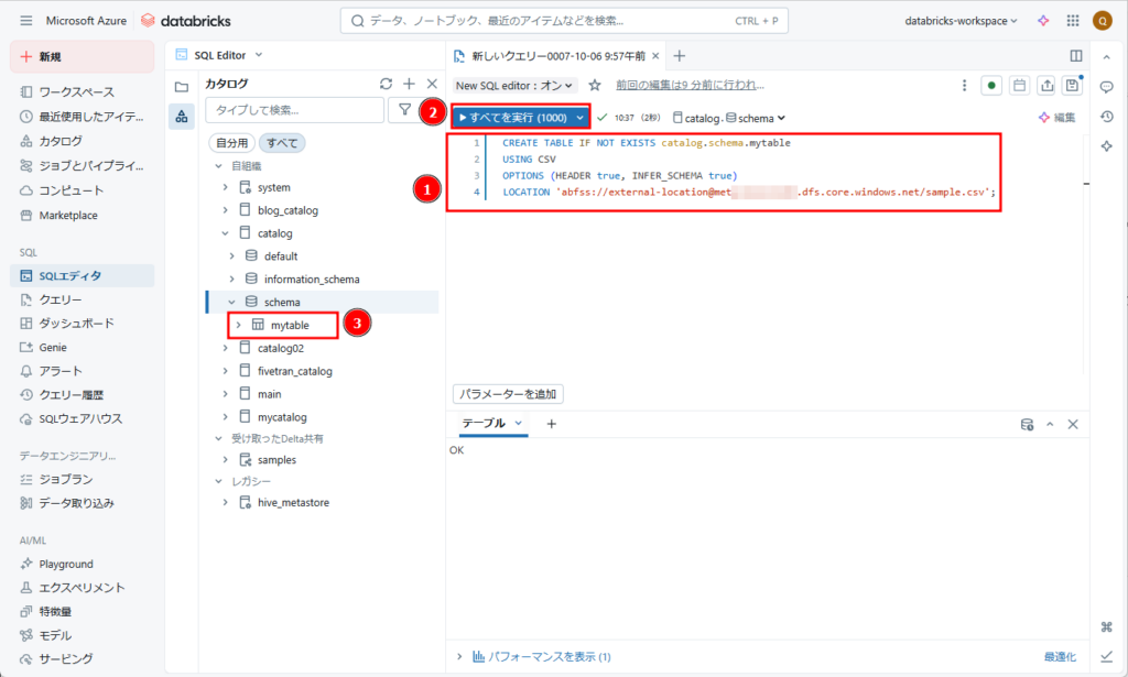 今回は【Azure Databricks】SQL Editorで外部テーブルの作成をします。