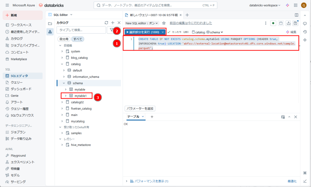 4.外部テーブルの作成【外部ファイルがparquetの場合】