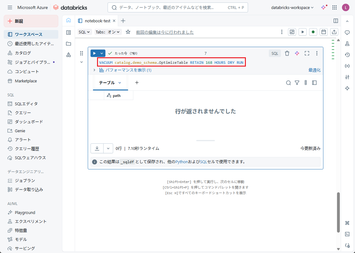 VACUUMは実行すると、Deltaテーブルの全ての保存期間切れのデータファイルを削除します。