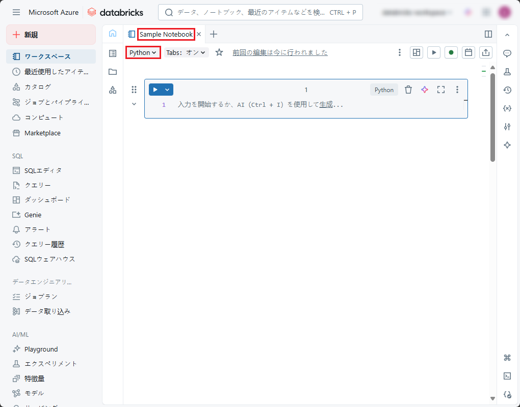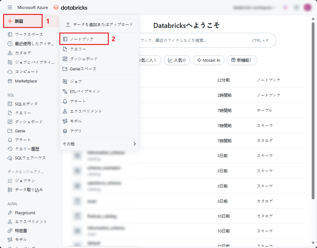 まず、Databricks ワークスペースでノートブックを作成します。