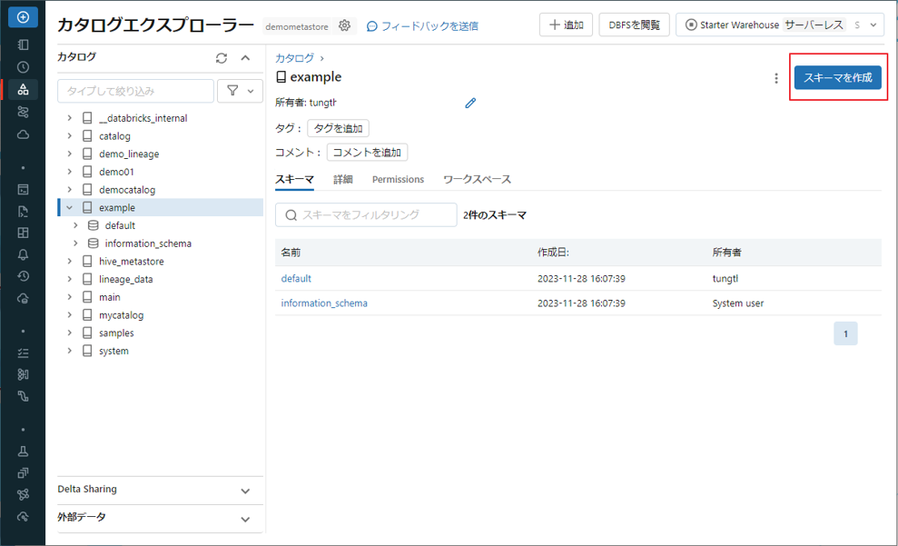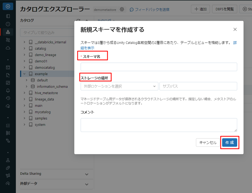 3.1 カタログ エクスプローラーでスキーマを作成する