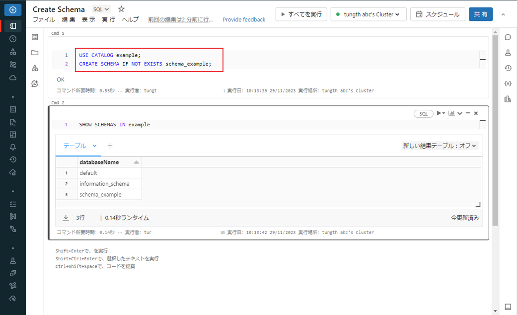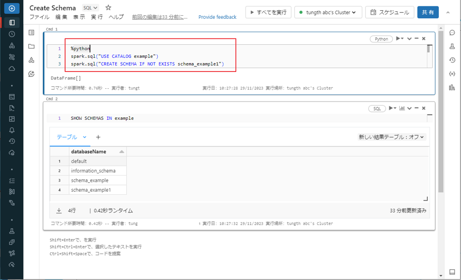 - 2023年12月4日ブログ【Azure Databricks】スキーマの作成方法