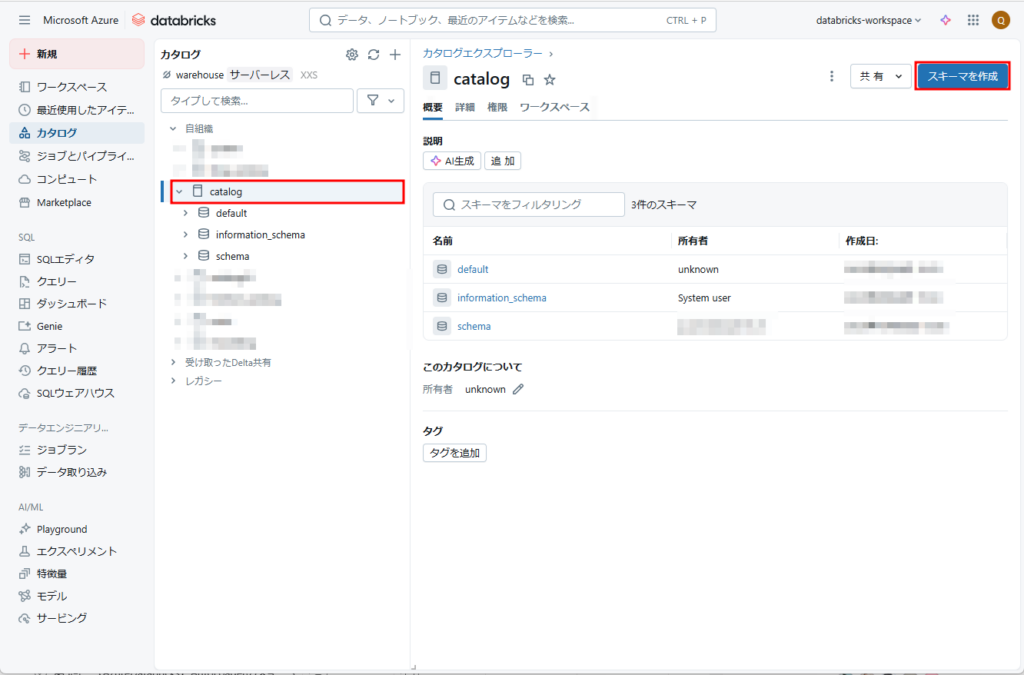 - 2023年12月4日ブログ【Azure Databricks】スキーマの作成方法