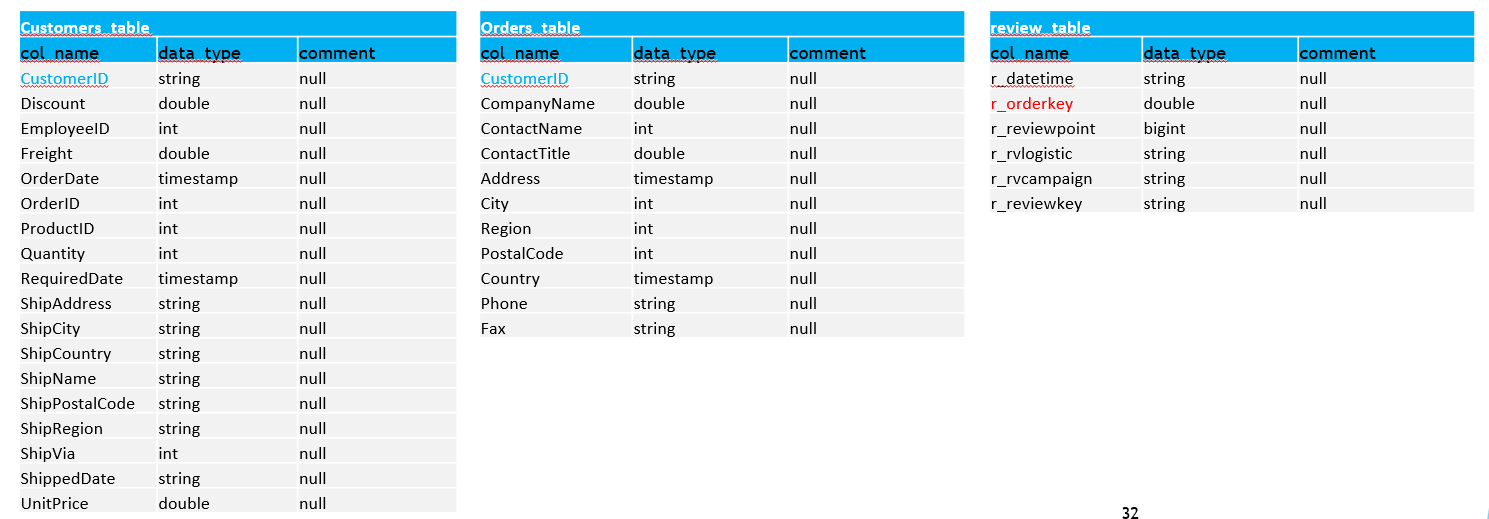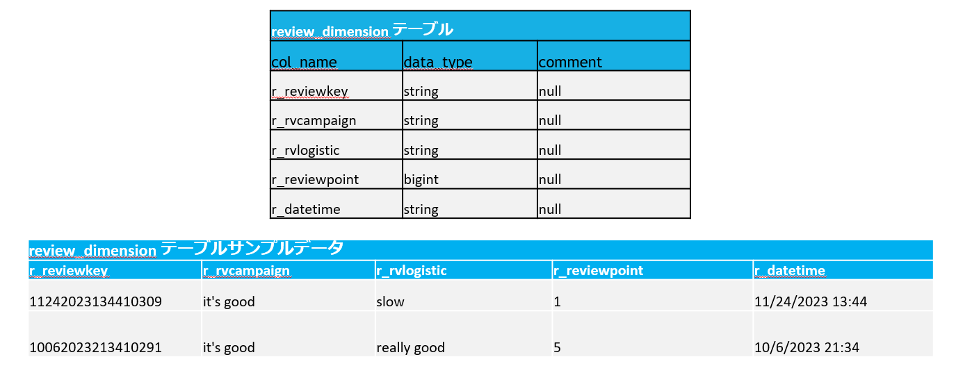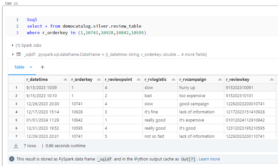 ブロンズレイヤーからデータがシルバーレイヤーに変換されました。review_table のレコードが一意になるように、欠落情報および、r_orderkeyが追加されました。