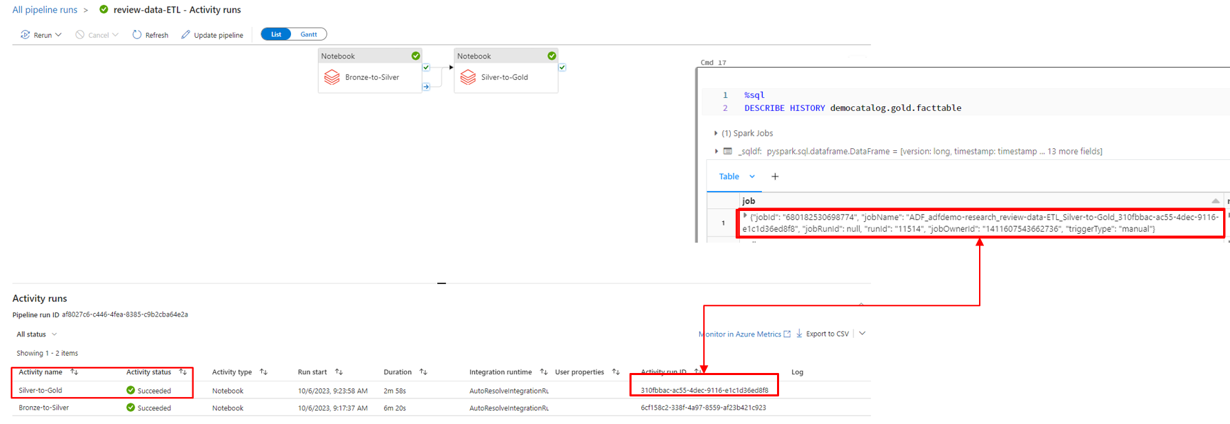 パイプラインを使用して、データがゴールドレイヤーに正常に取り込まれました。