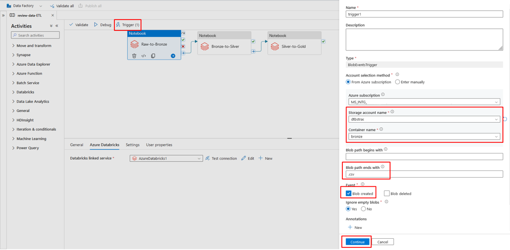 ・新規ファイルが作成される時にパイプライン実行用のトリガーがブロンズ コンテナーで設定されたこと。