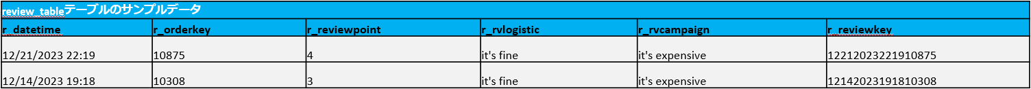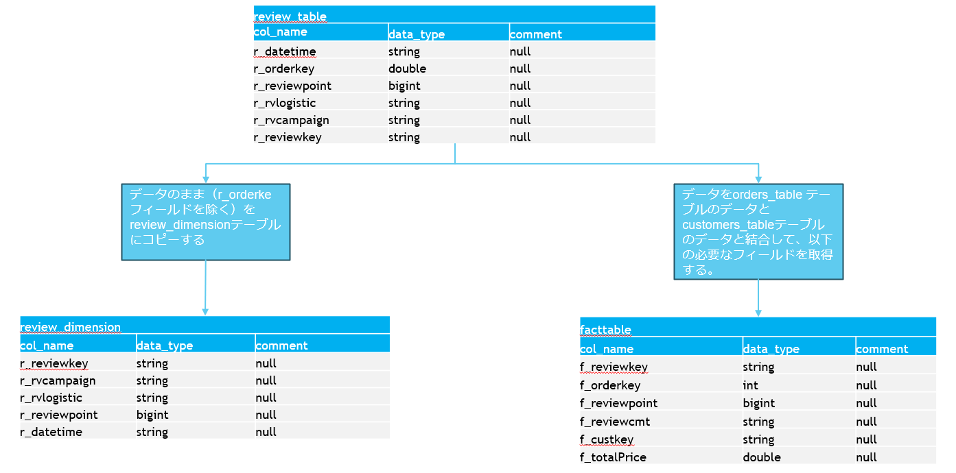 • review_idを作成します: review_idが「timestamp」+「r_orderkey」で構成され、主キーとして設定します
