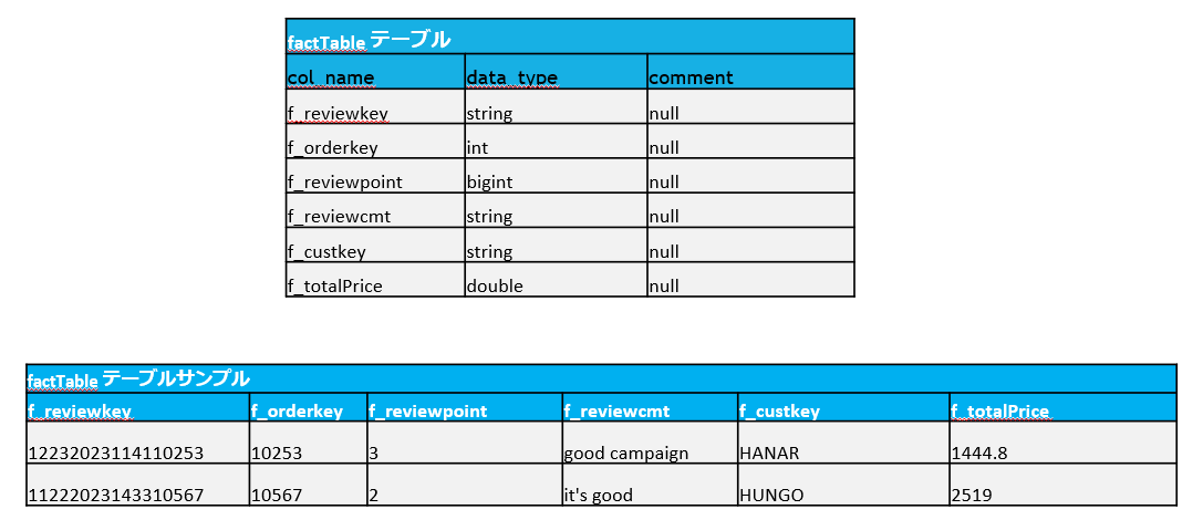 • Fact:(f_reviewpoint)格付けおよび、(f_totalPrice)総収益に関する情報
